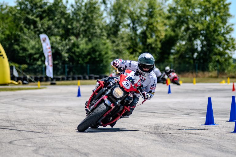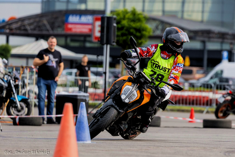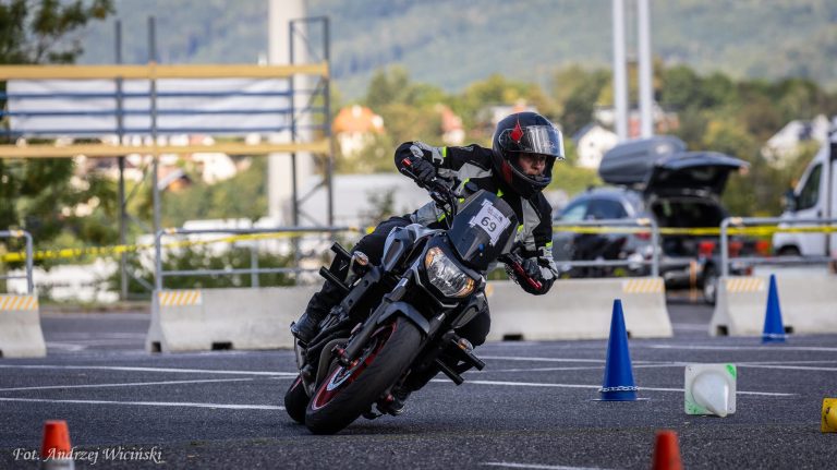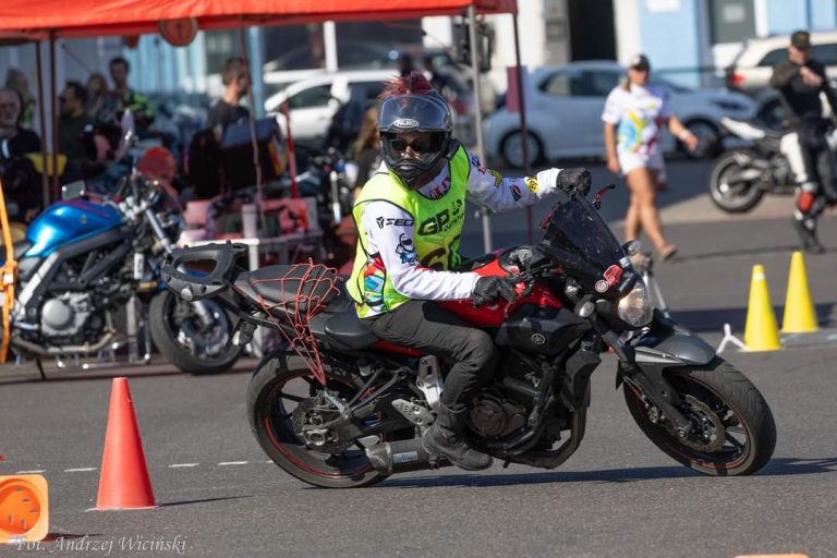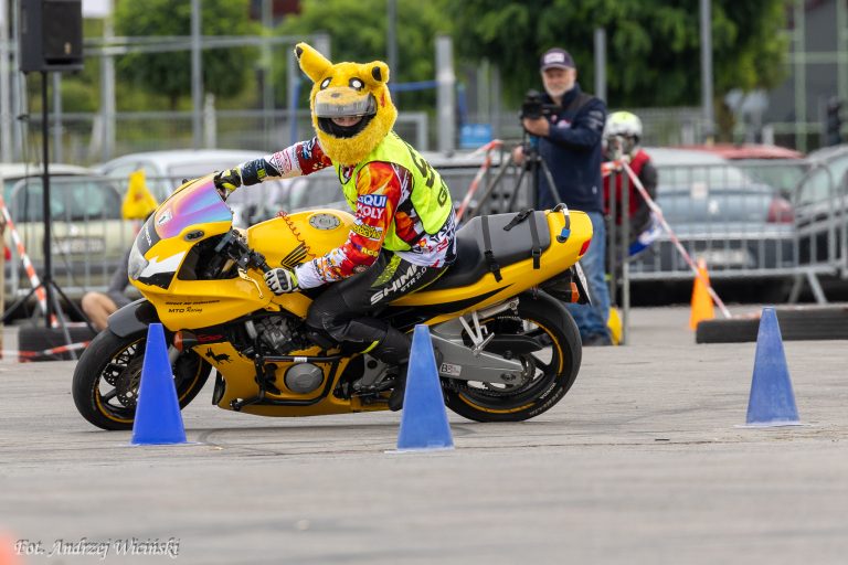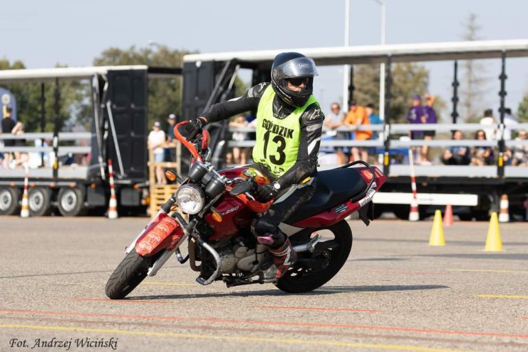 Michał Góździk to instruktor techniki jazdy i nauki jazdy, z motogymkhaną związany od wielu lat, a w zawodach startuje od zaledwie trzech sezonów. Jest rekordzistą Polski, znanym z niecodziennego wyczynu — podczas jednej rundy jako jedyny TRZYKROTNIE pomylił trasę.
