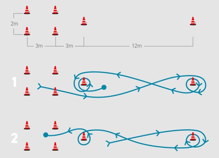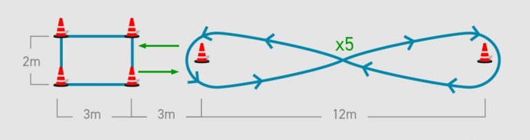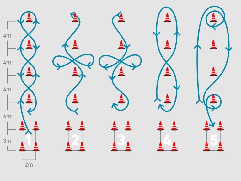 • 8 GP (Grand Prix) – klasyczna figura w kształcie ósemki, ucząca zmiany kierunku i balansowania motocyklem.